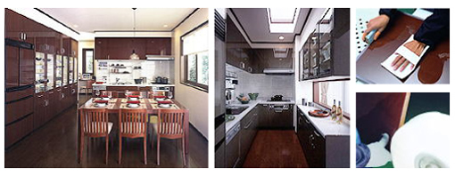 The luster of a piano surface and depth you feel when looking in a mirror Eno other kitchen could ever shine like this system does. Special attention should go to the sharp reflection, a distinctive characteristic of the mirror surface. A kitchen is like an artistic reflection of the atmosphere of every home. The finish we use, which introduces a painting technique that is the same as that which is used in the finish of musical instruments, will enhance the decorative impression of your family's home dining experience. These are our original specifications made in the pursuit of highest functionality in such areas as storage capacity, convenient sink fittings and sophisticated.