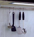Wall cabinets (2 places) are equipped with movable racks. The racks can be pulled down easily to eye height, which makes your kitchen work more efficient.